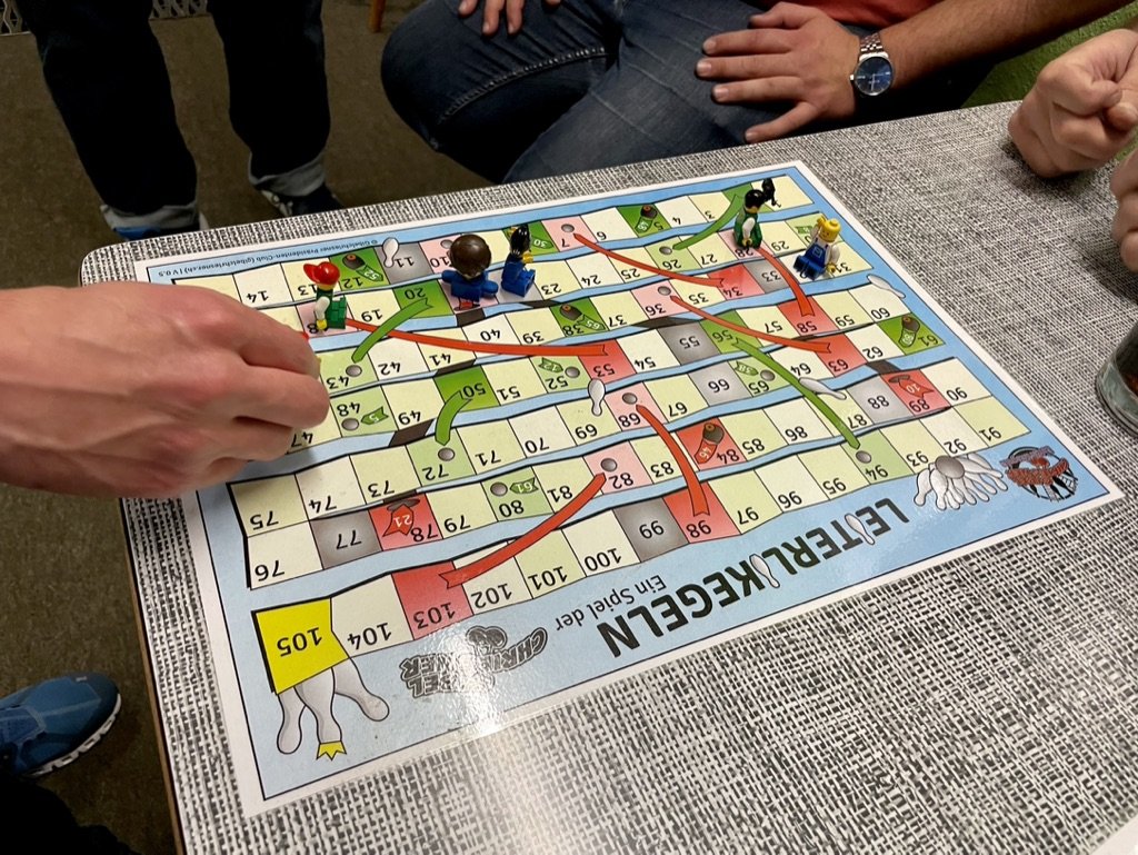 Nun stand aber zuerst das Auskegeln der unteren Plätze an. Im „Best-of-5“ Modus traten nun die Gleichplatzierten der beiden Bahnen an. Die ersten drei Partien gewann dabei stets die Bahn rechts. Marco Betschart setzte dem ein Ende und gewann auch mal für die „linke“ Bahn. Beim Kampf um Rang 3 konnte sich aber Michi wieder von der rechten Bahn den 3. Platz des Leiterlikegelns holen. Das Final zwischen Christian und Severin wurde im „Best-of-7“ Modus durchgeführt. Christian konnte sich schnell in Führung werfen, hatte aber dann über mehrere Runden eher schlechte Würfe, sodass Severin aufholen konnte. Schlussendlich gewann Christian aber das Duell und so hiess es, gemäss den Worten von Lucas im Telegram-Chat: „De alti Sieger isch de nüi Sieger🏆 🎳“. Abschliessend gab es noch Trank und Dessert vorne im Restaurant. Dabei wurde auch gleich die Bahn für das nächste Jahr reserviert.
